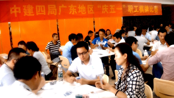 为庆祝“五一”国际劳动节,展现职工精神面貌,丰富职工业余文化生活, 4月25日,局在局总部举办了中建四局广东地区“庆五一”职工棋牌赛,局属广东地区13家单位的96名棋牌爱好者参加比赛。